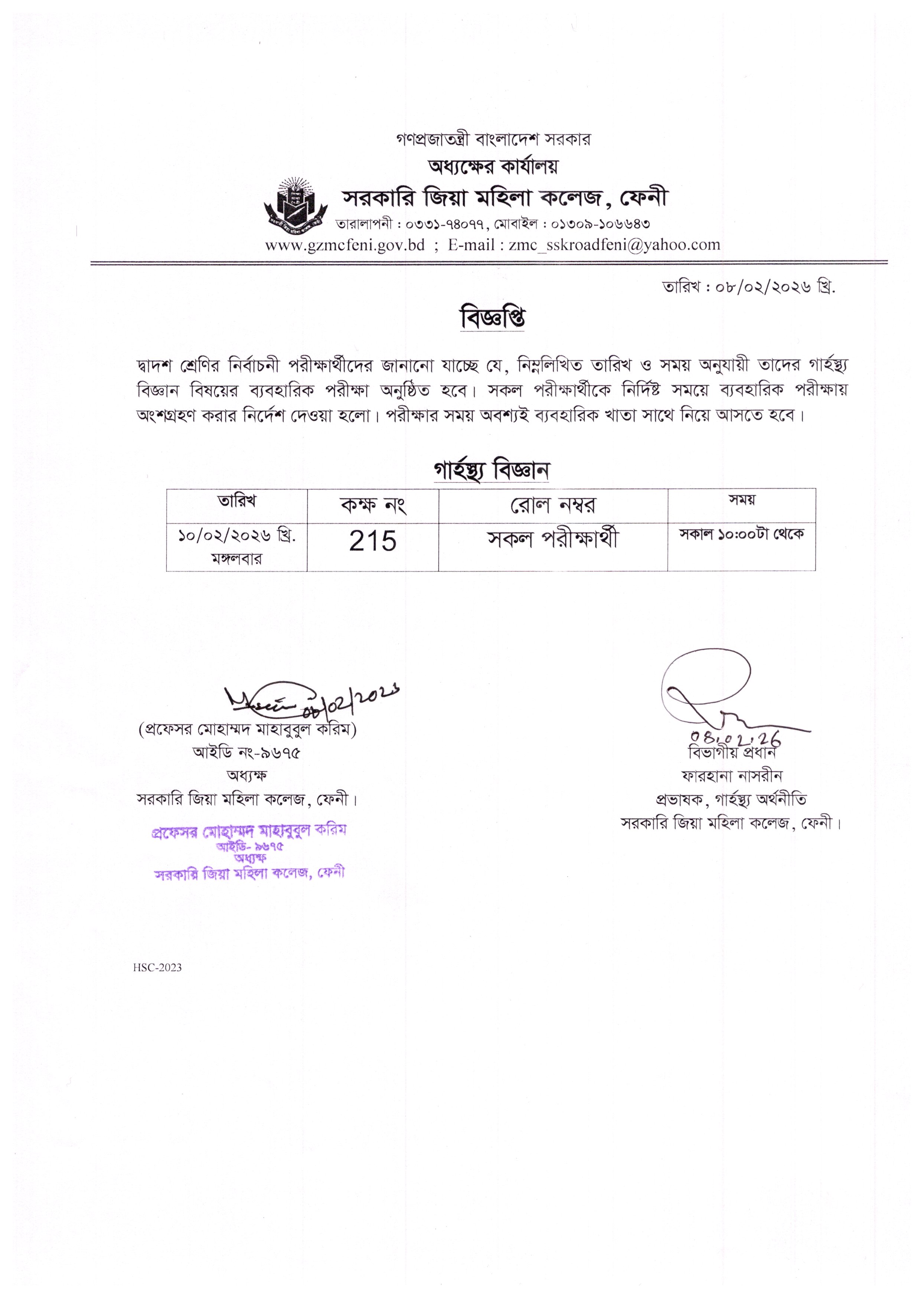 ২০২৩ সালে এইচএসসি পরীক্ষায় অকৃতকার্য ছাত্রীদের পূন:ভর্তির বিজ্ঞপ্তি। |