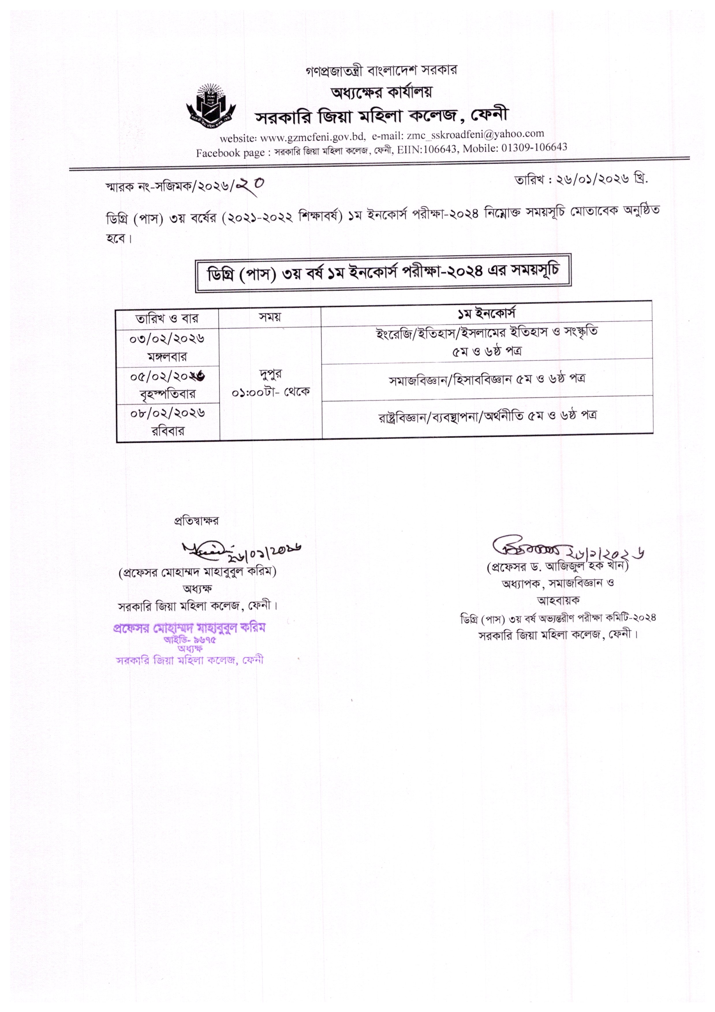 ২০২১-২০২২ শিক্ষাবর্ষের ডিগ্রি (পাস) ৩য় বর্ষ ১ম ইনকোর্স পরীক্ষার সময়সূচি। |