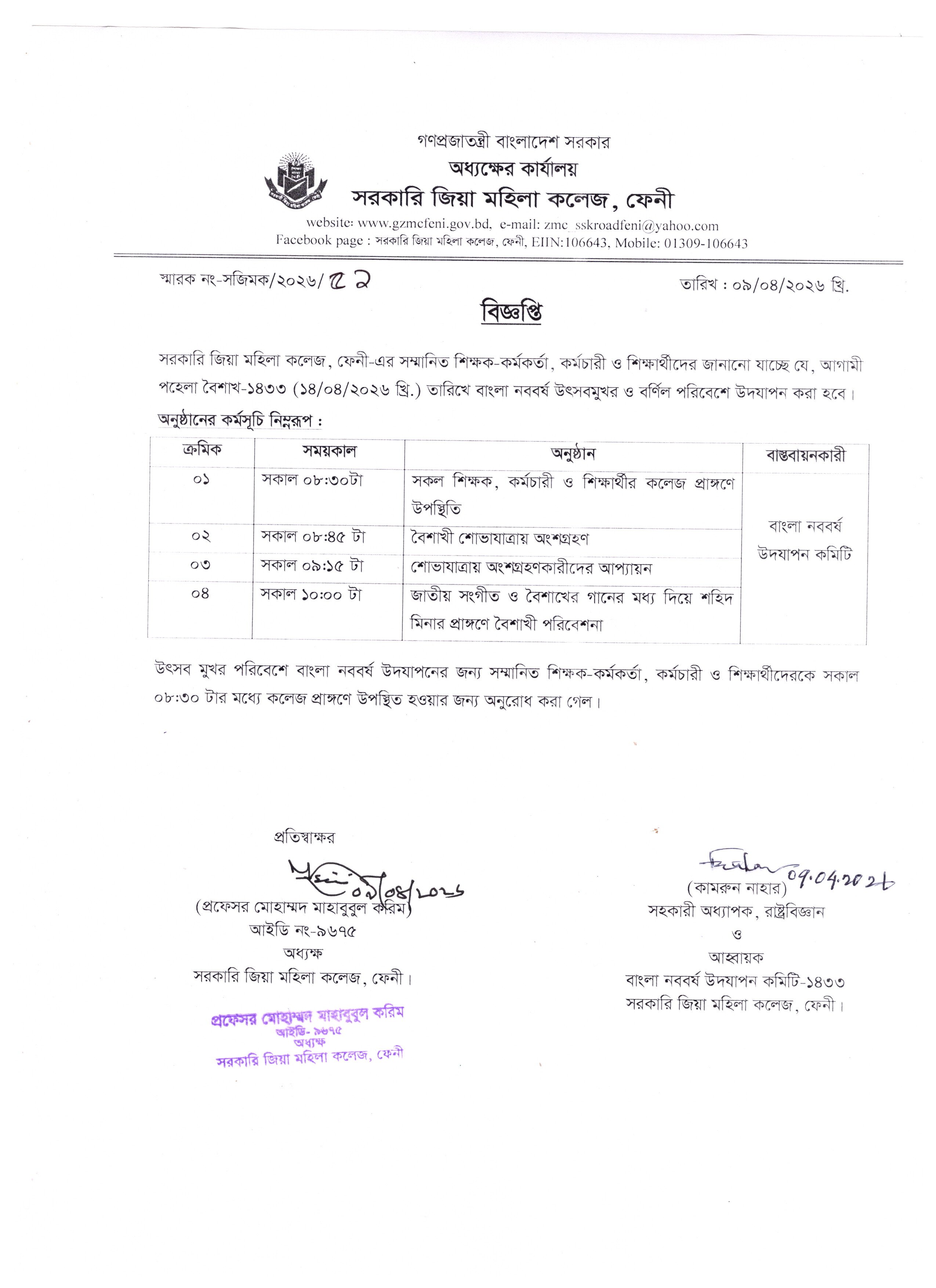 - বাংলা নববর্ষ-১৪৩৩ উদযাপন উপলক্ষ্যে কলেজ কর্তৃক গৃহীত কর্মসূচি।