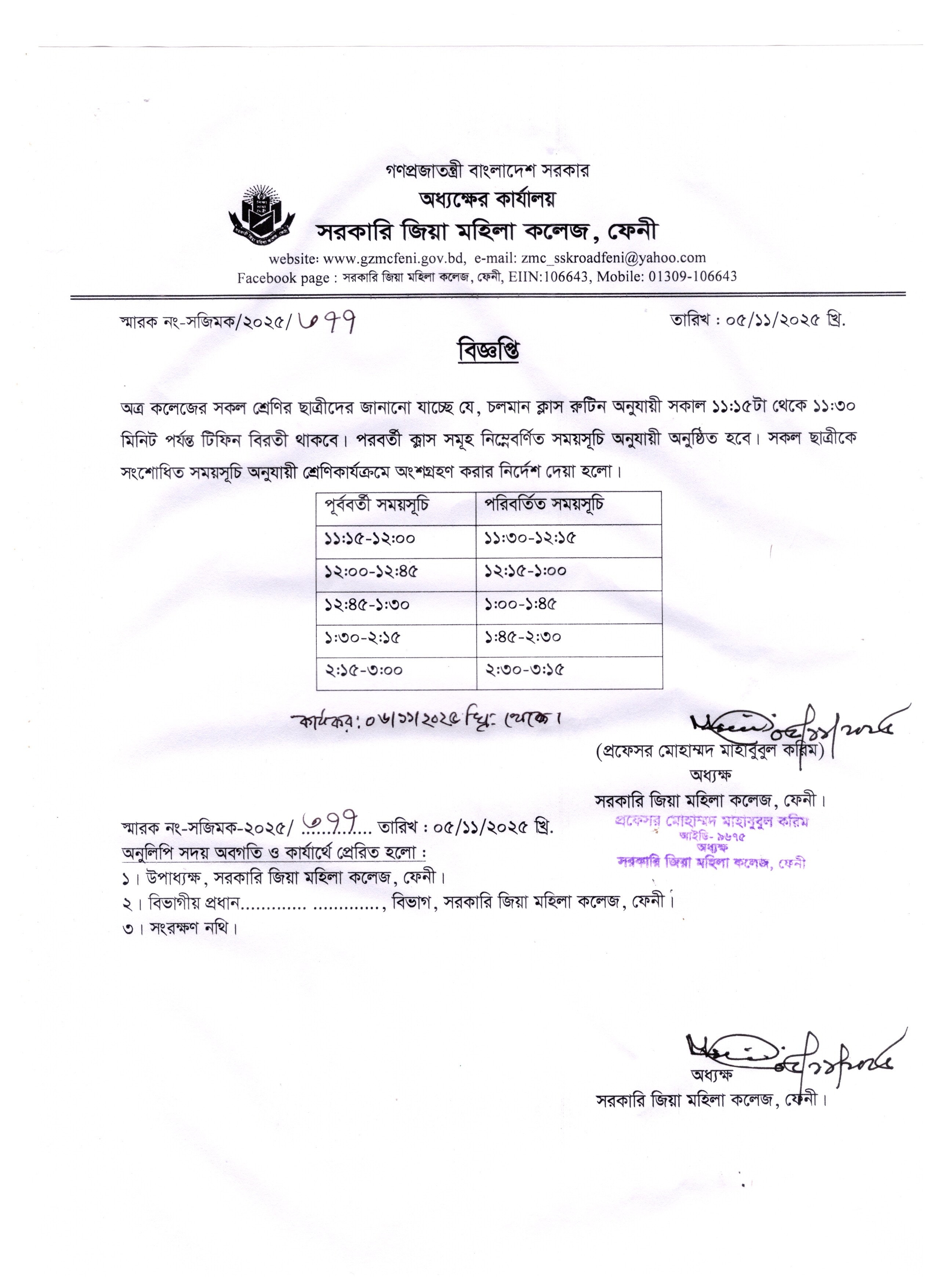 ক্লাস রুটিনে টিফিন বিরতীর বিজ্ঞপ্তি। Download