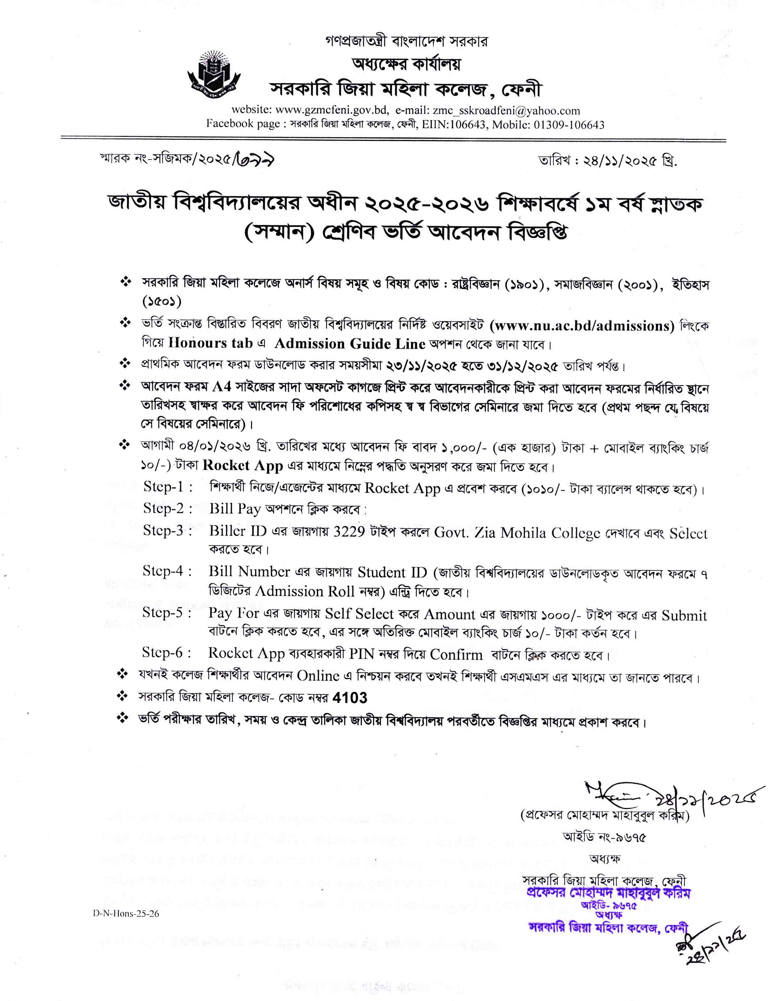 - ২০২৫-২০২৬ শিক্ষাবর্ষে স্নাতক (সম্মান) শ্রেণির ভর্তি আবেদনের বিজ্ঞপ্তি।