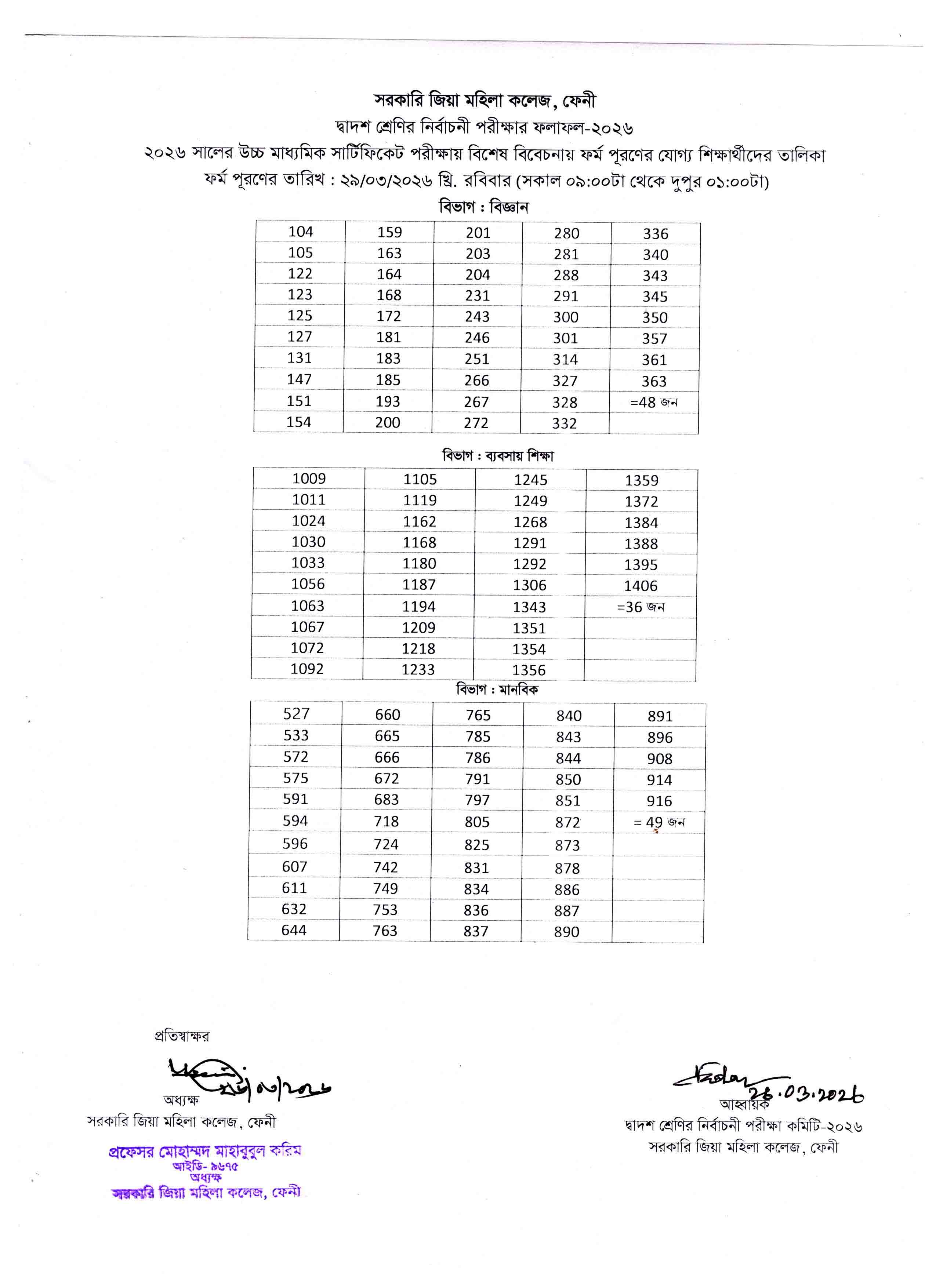 - বিশেষ বিবেচনায় উত্তীর্ণ ছাত্রীদের উচ্চ মাধ্যমিক সার্টিফিকেট পরীক্ষা-২০২৬ এর ফরম পূরণের বিজ্ঞপ্তি।