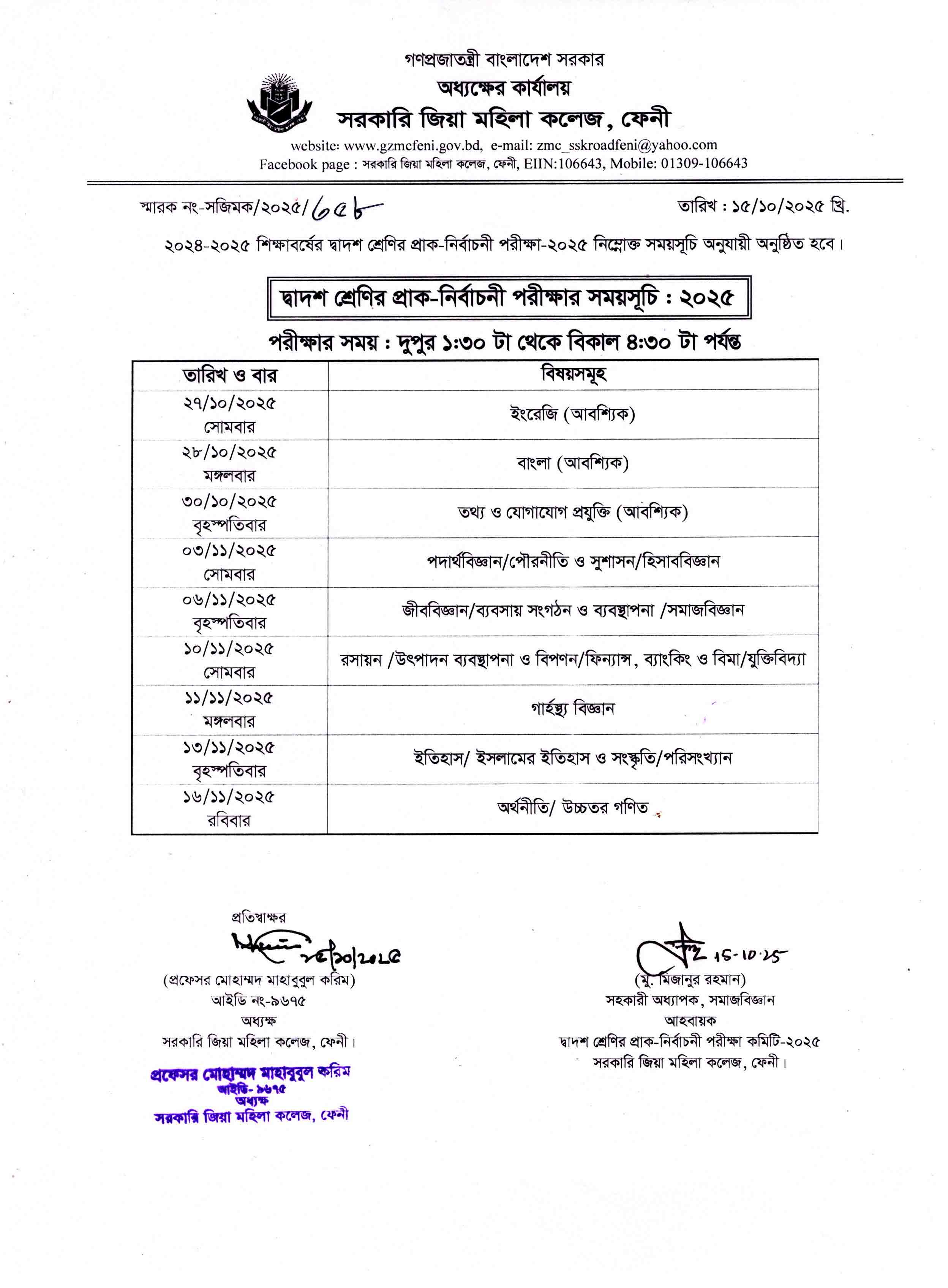 দ্বাদশ শ্রেণির প্রাক-নির্বাচনী পরীক্ষা-২০২৫ এর সময়সূচি Download