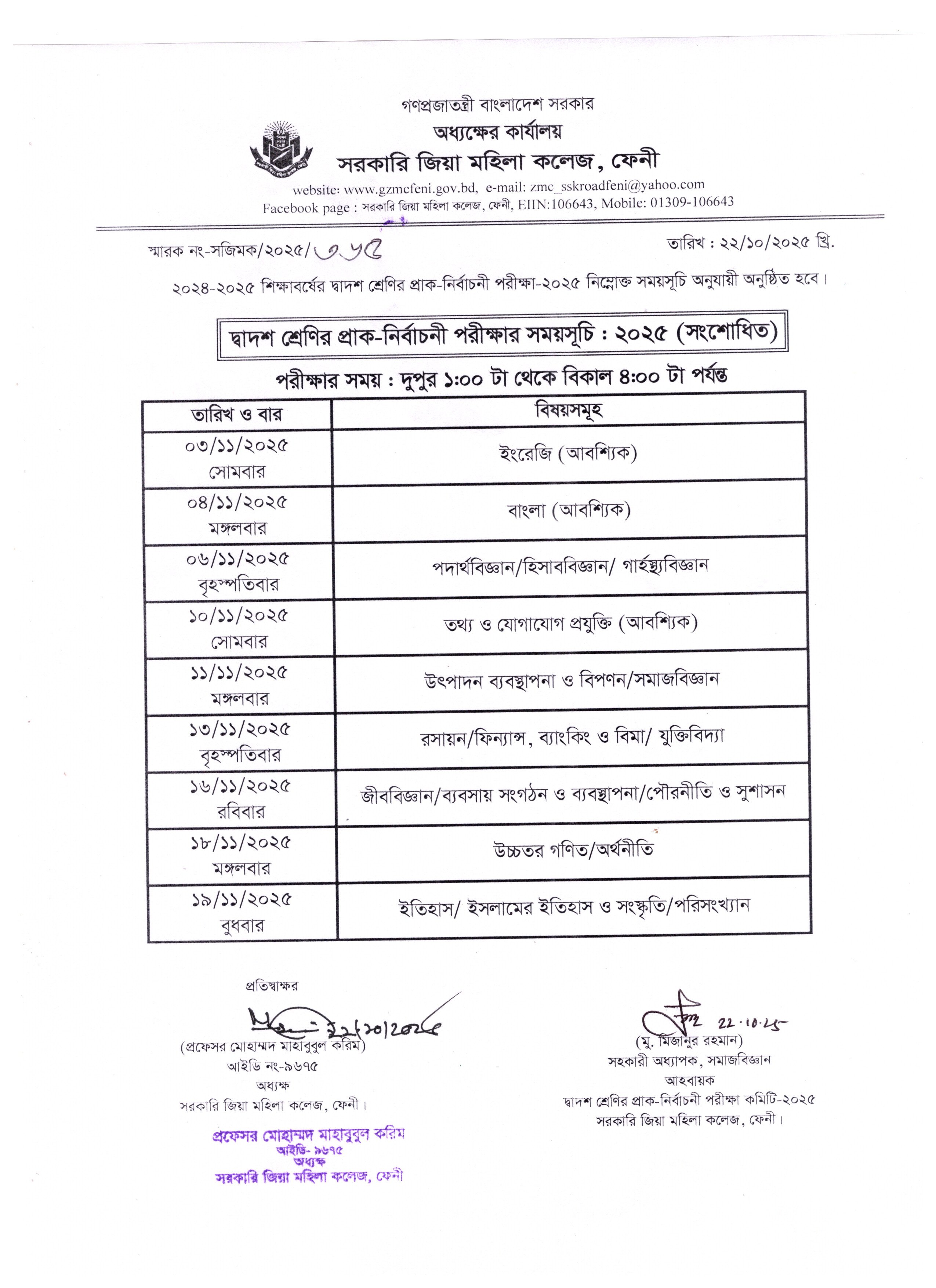 - দ্বাদশ শ্রেণির প্রাক-নির্বাচনী পরীক্ষা-২০২৫ এর (সংশোধিত) সময়সূচি।